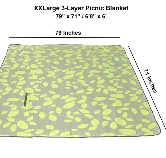 80" x 72" 3-Layer XXLarge Waterproof Outdoor Blanket - Green Leaves